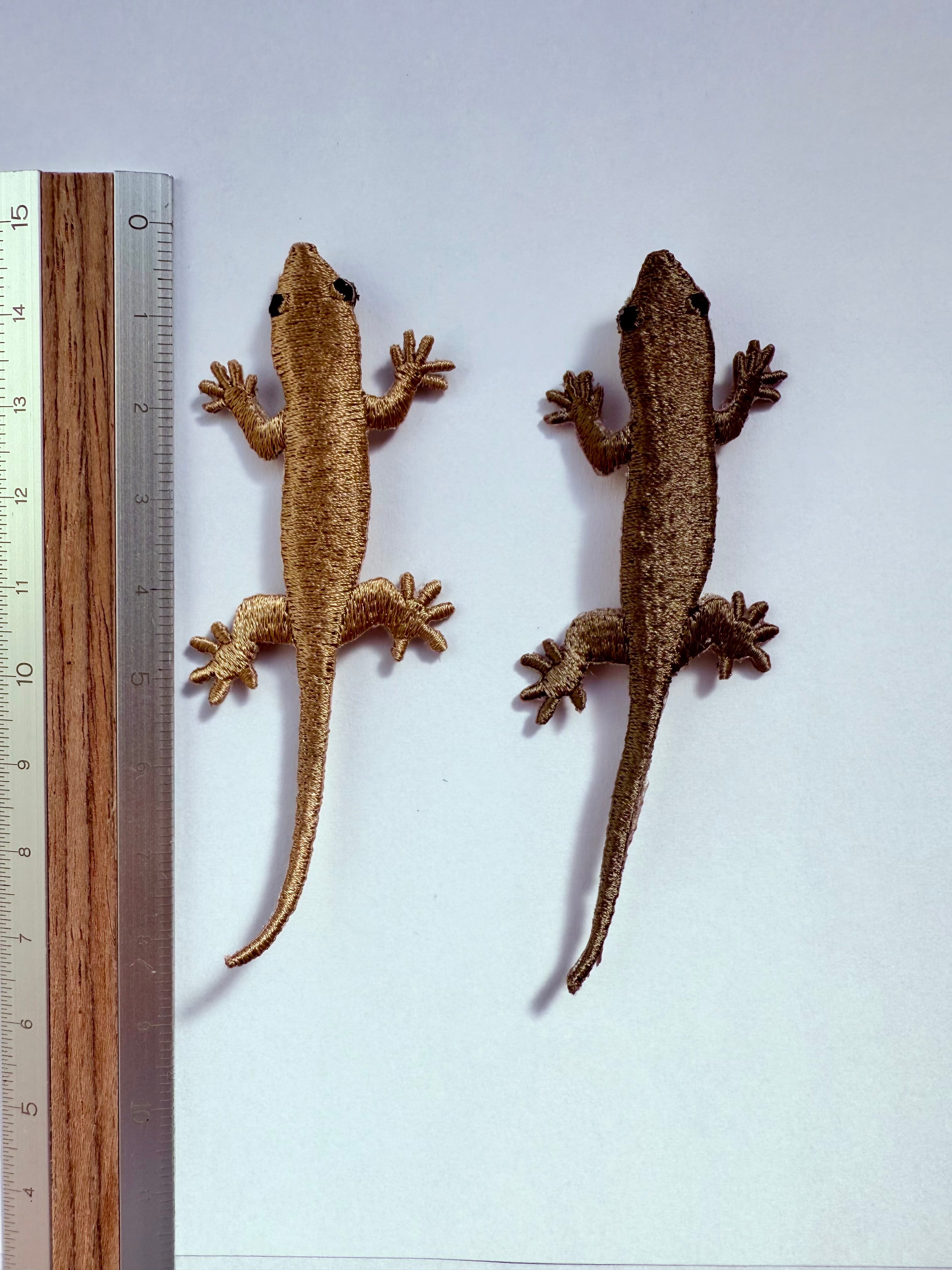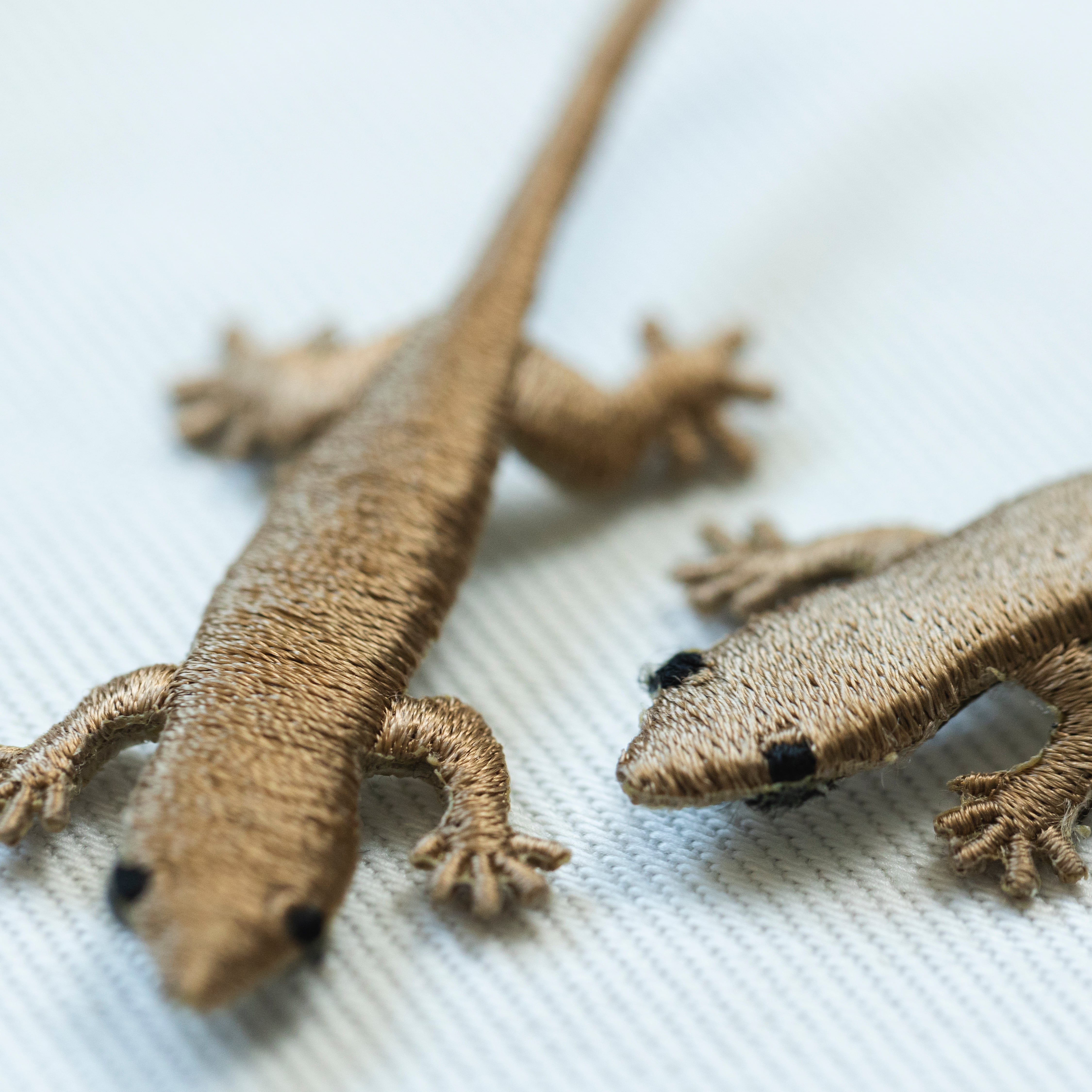 ニホンヤモリ(ベージュ・ダークグリーン) ストラップ・ブローチ・ピアス