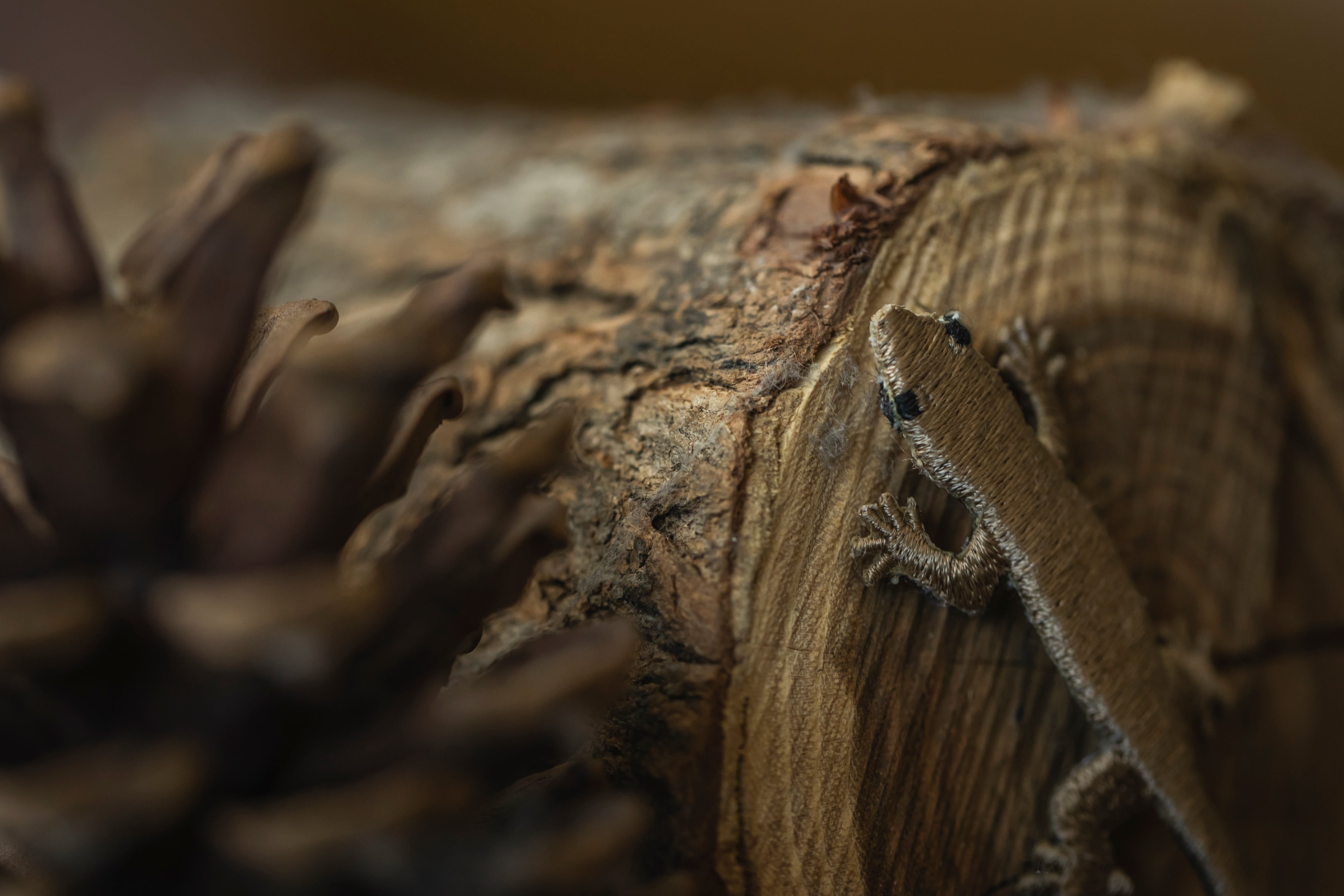 夜の壁を静かに歩く守り神。五本の指や尾の丸みまで、命の息づかいを感じる仕上がりです。