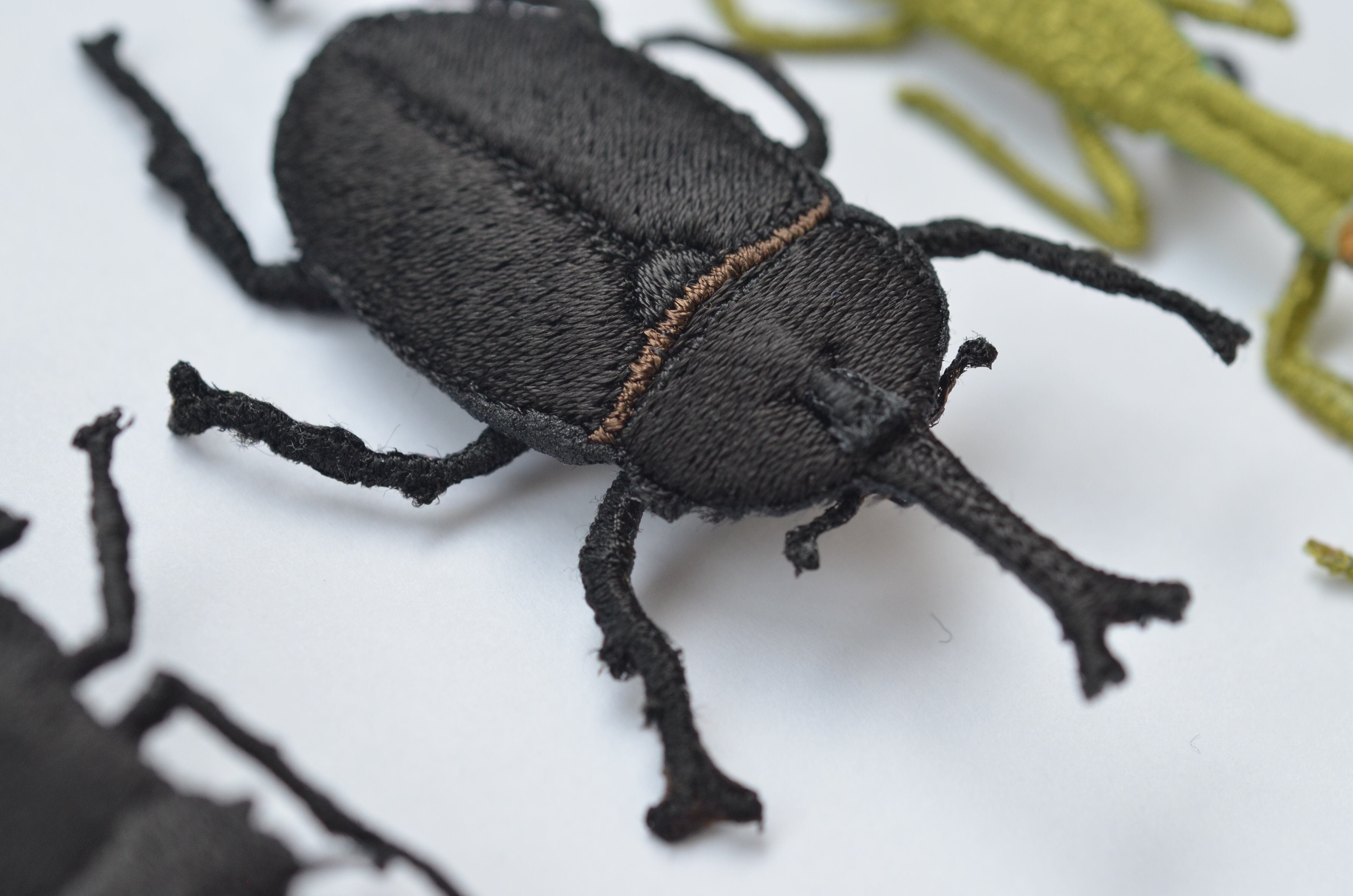 角の曲線と艶やかな黒。夏の象徴をそのまま糸で封じ込めたような存在感です。